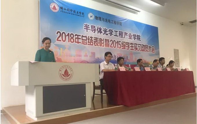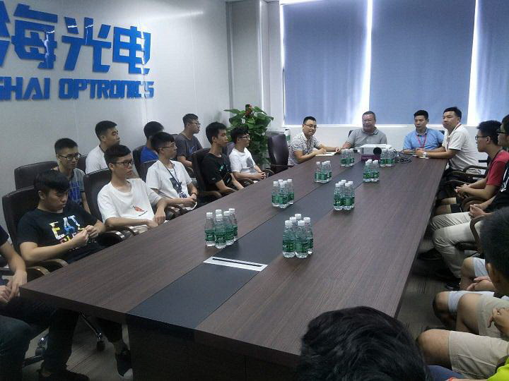 广东翔海光电科技有限公司6月28日 2018年6月26日我司受佛山科学技术学院物理与工程学院的邀请,参加“2018年总结表彰暨2015级学生实习动员大会”。听取校院领导的报告、检视在校学生的知识产权科研成果以及往届实习同学的总结发言。会后我司与该学院谢嘉宁副院长、陈仁副教授作亲切的交谈,并表示今后将加强企校3+1教育合作模式,把企业实际学术需求引入学校