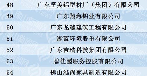 翔海铝业入榜2019佛山企业100强